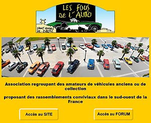 Les Fous de l'Auto ![]() Club de voitures anciennes et peu ordinaires. Rencontrer et faire rencontrer les passionnées de vieilles voitures. Club situé en Gironde à st André de Cubzac. >> Visiter le site |