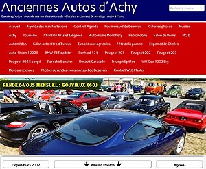 Anciennes Autos d'Achy ![]() Site sur les véhicules anciens avec agenda des manifestations et compte rendu des sorties en albums photos, le rendez-vous mensuel de Beauvais, des archives, des pubs anciennes, des notices d'entretien, les show room des champs élysées ... >> Visiter le site |